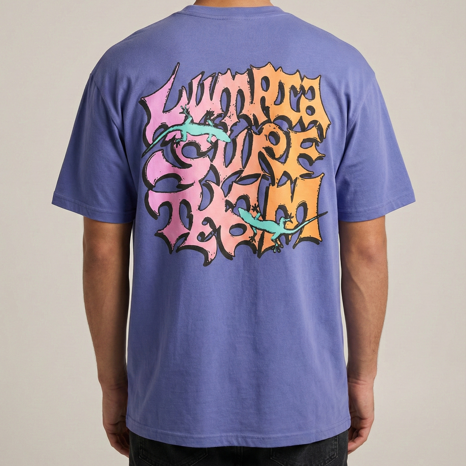 The Butiki Tee is a vault-era graphic with our warped Lumpia Surf Team mark and a couple of little butiki lizards cruising through the chaos. Big back hit, clean left-chest stamp up front—loud enough to get noticed, chill enough to wear every day. Printed in full color on soft, heavyweight cotton.