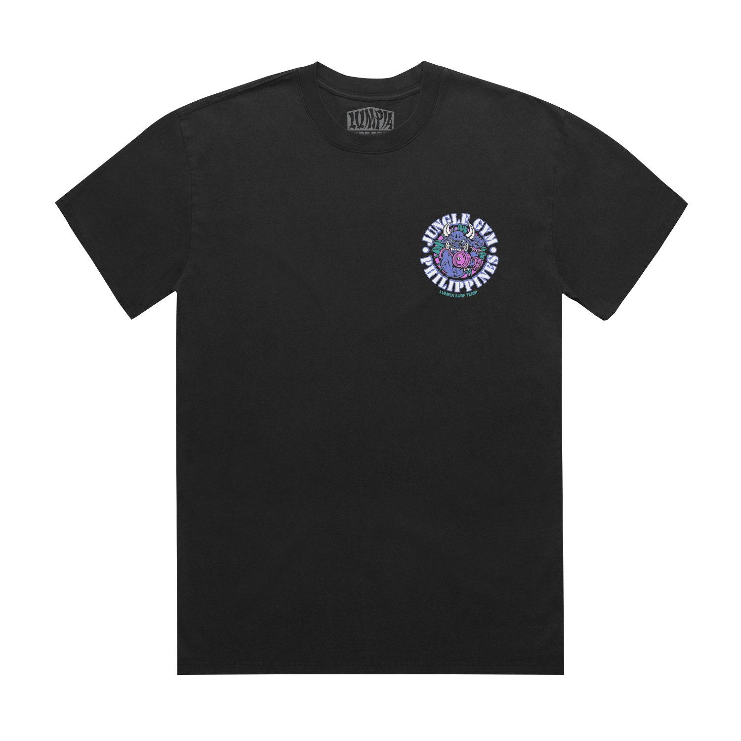 Our Jungle Gym Tee in a washed Black. Heavy 240 GSM cotton and slightly boxy fit for comfort and breathability. Limited run, get it now before you can't get it at all.